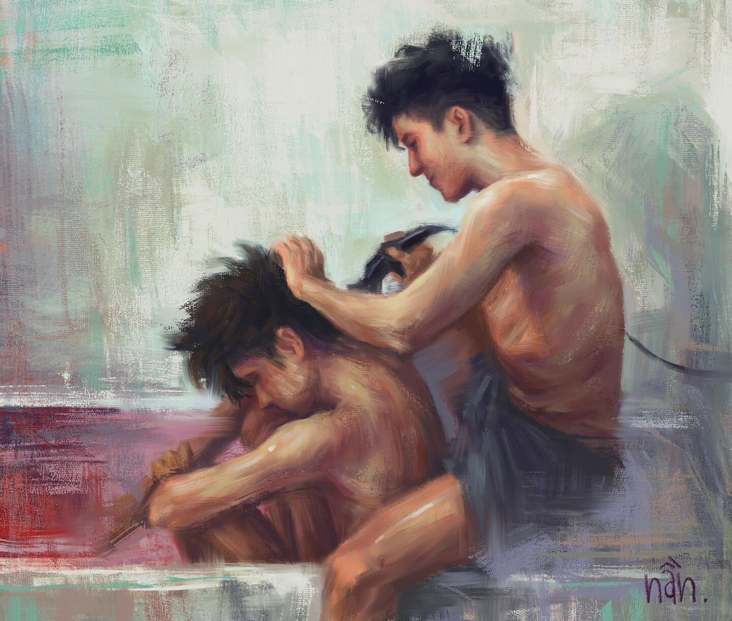 Chắc chắn rằng tranh cá nhân và tranh comm sẽ khác nhau ở những sắc thái cảm xúc vì tranh comm thì sẽ là cảm xúc của các bạn và việc của mình là thấu hiểu nó và vẽ ra cảm xúc ấy, nhưng đừng lo lắng vì nét vẽ của mình vẫn như vậy và không thay đổi chất lượng tranh. Điều thay đổi là cảm xúc trong tranh và câu chuyện của nhân vật các bạn. Và mình rất sẵn lòng được lắng nghe và được vẽ nên những ý tưởng của mọi người bằng nét vẽ của mình.
